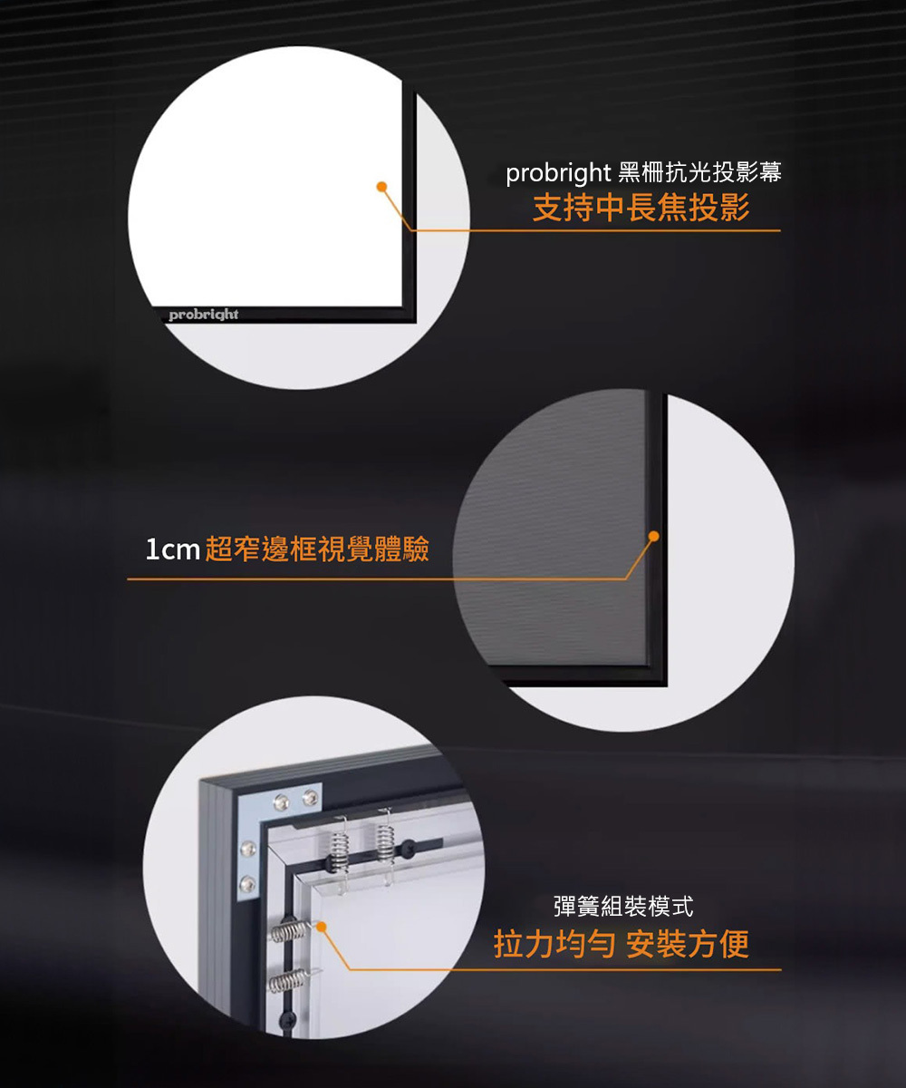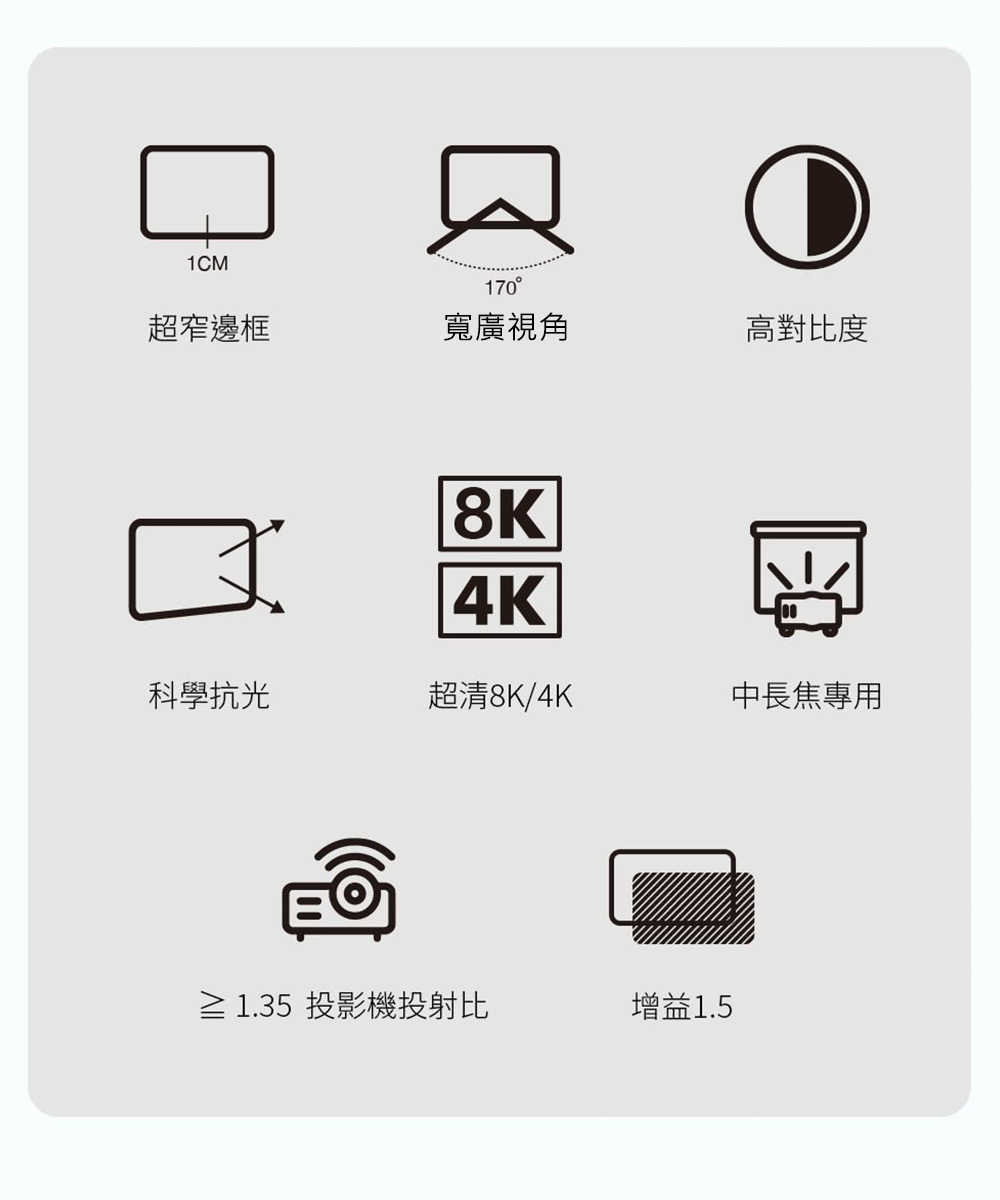 品  名:probright 100吋 16:9 8K/4K 中長焦高增益對比投影機抗光幕