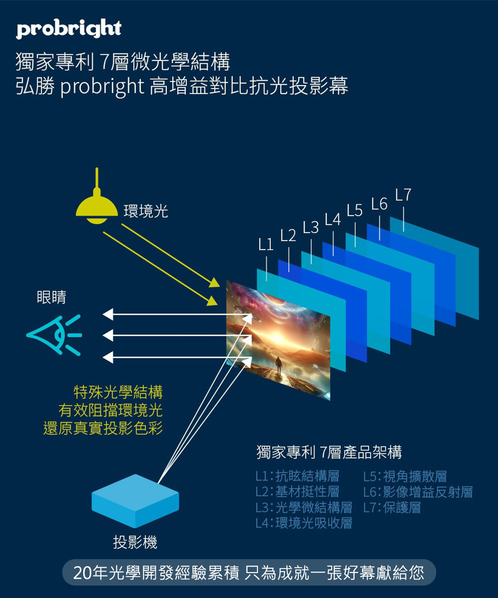獨家專利7層微光學結構,呈現最好螢幕給您。