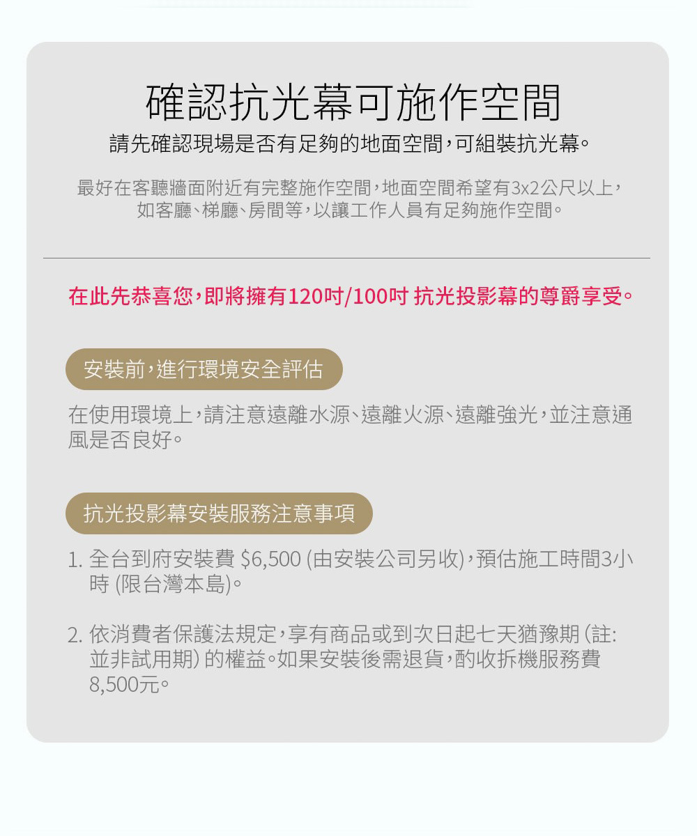 1.本產品內容物僅包含:100吋 中長焦高增益對比投影機抗光幕;投影機僅為示意圖,無包含此產品內。