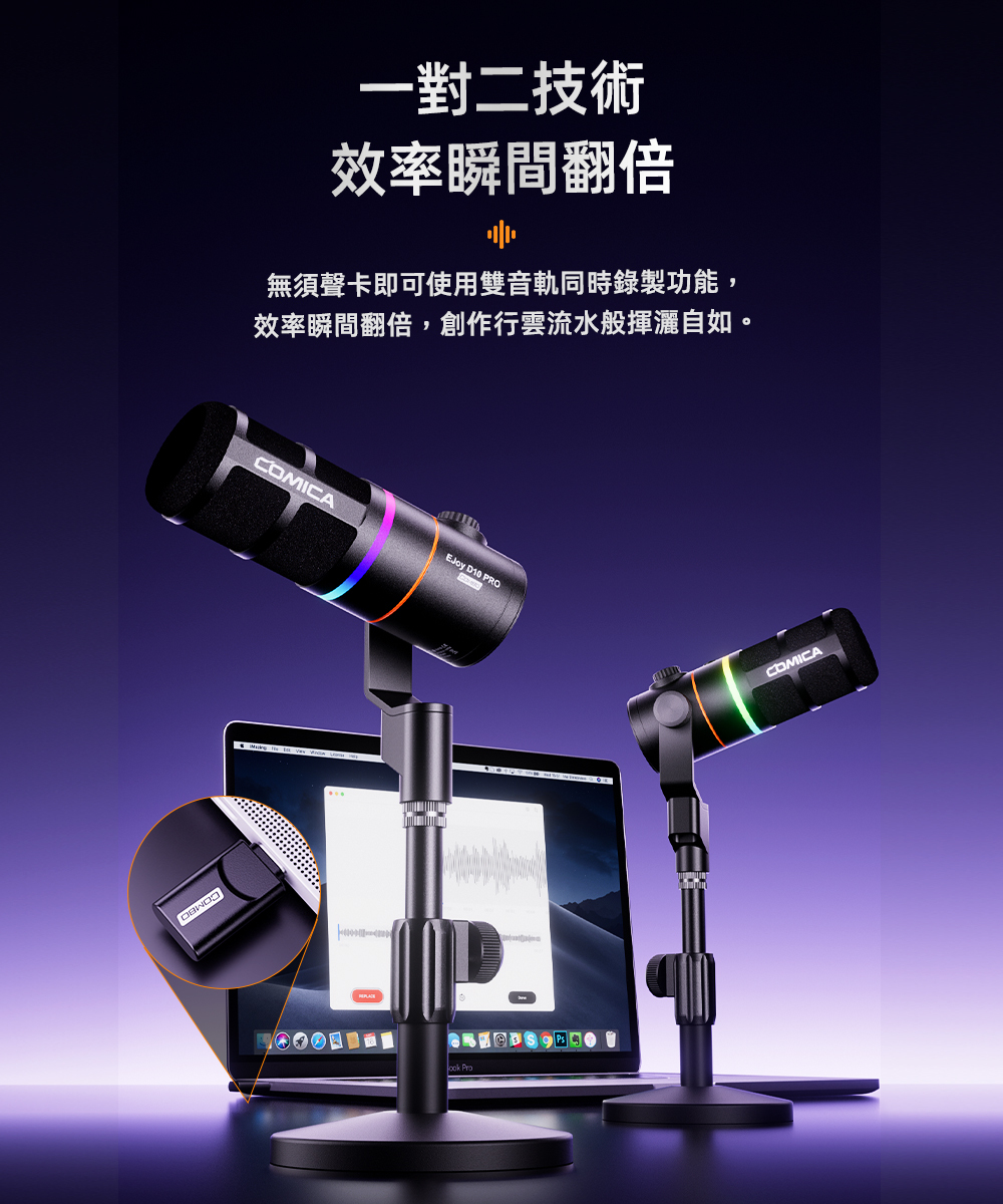 注意事項:COMBO產品僅包含: 麥克風(TX)*2、接收器(RX)*1、充電線/音訊傳輸線*2、USB-A轉USB-C轉接頭*2、麥克風支架*2、使用說明書*1。