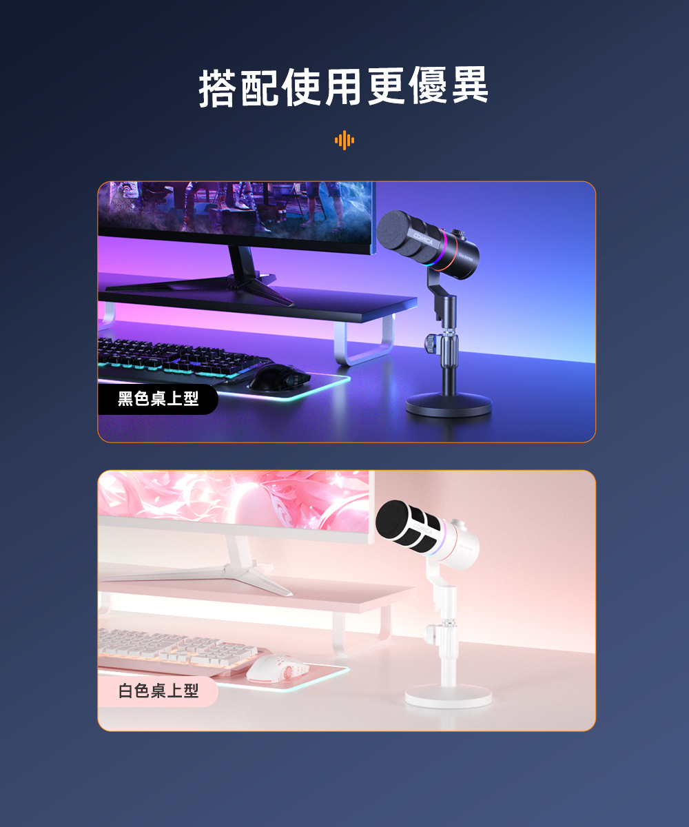 ●支援增益調整、監聽、一鍵降噪與靜音
