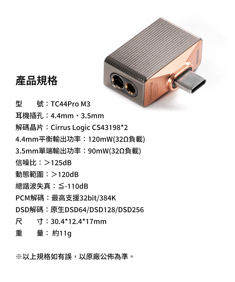 ●USB-C轉3.5mm / 平衡4.4mm 解碼小尾巴