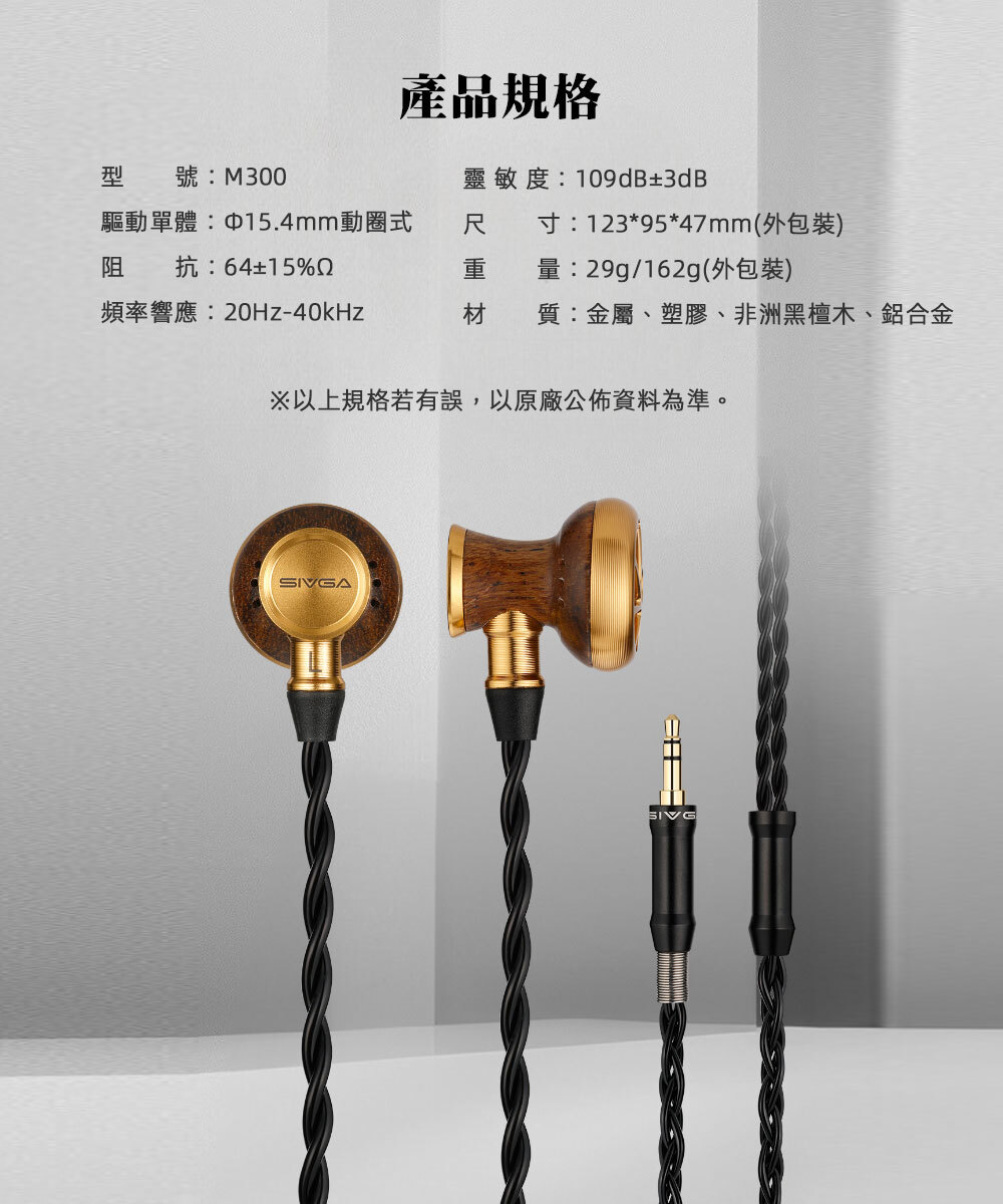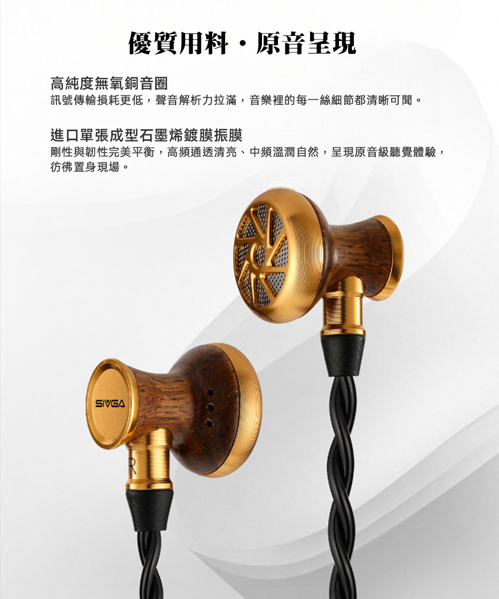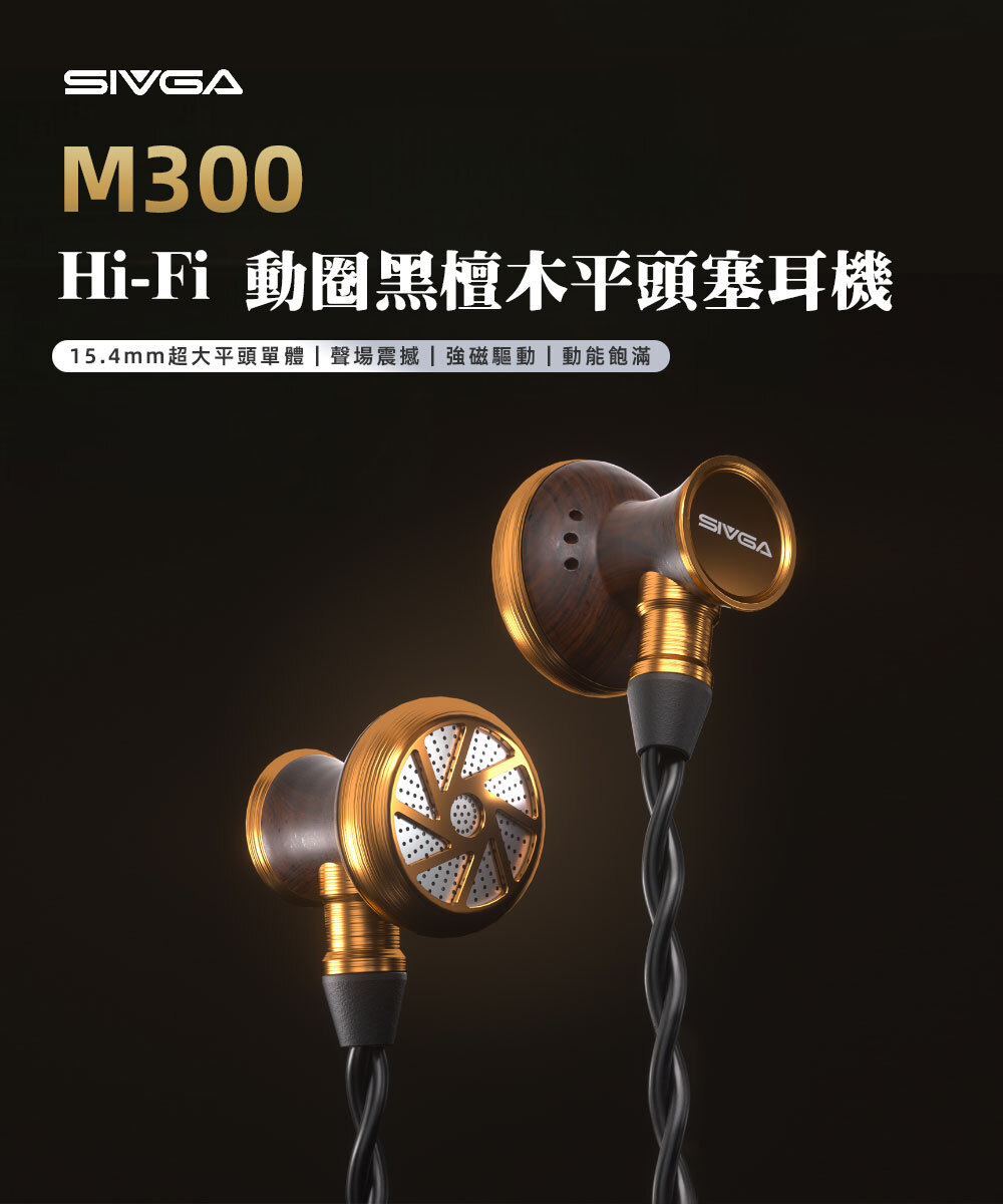 【SIVGA M300 Hi-Fi動圈黑檀木平頭塞耳機】