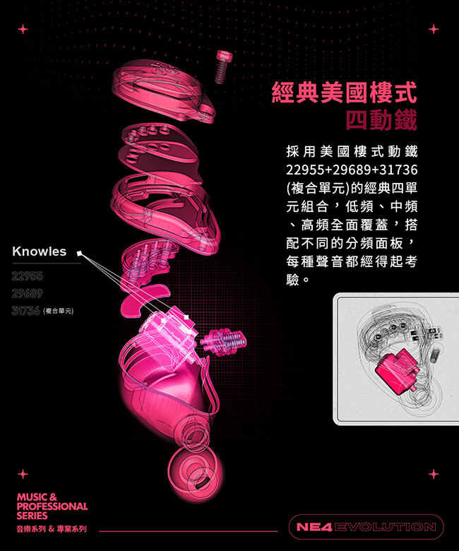 【NF Audio NE4 四動鐵可換分頻面板CIEM可換線入耳式耳機】