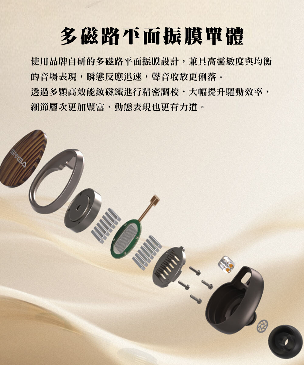 透過多顆高效能釹磁鐵進行精密調校,大幅提升驅動效率,細節層次更加豐富,動態表現也更有力道。