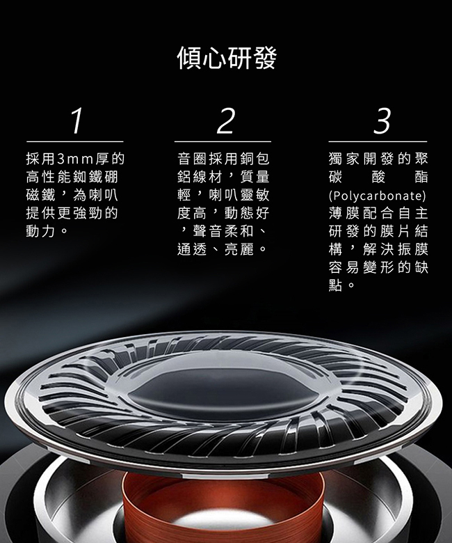 以超薄震模的物理特性,確保聲音還原的順態和細節,