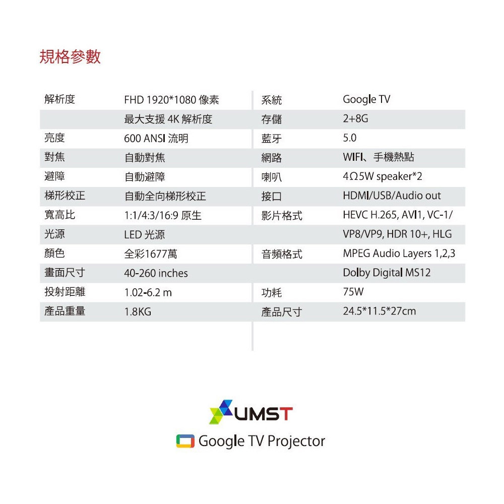 GoogleTV 投影機電視+電影+追劇+電玩+Live球賽