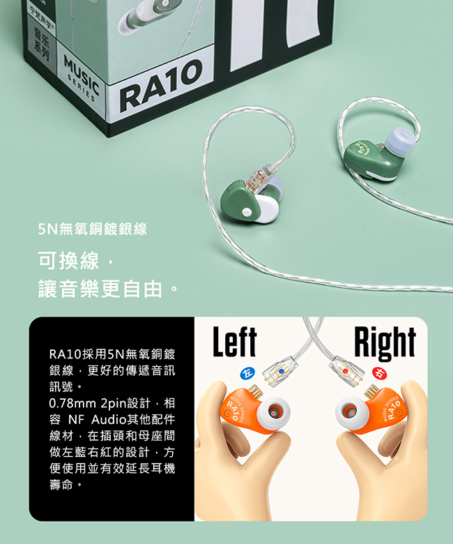【NF Audio RA10 高磁力微動圈可換線入耳式耳機】