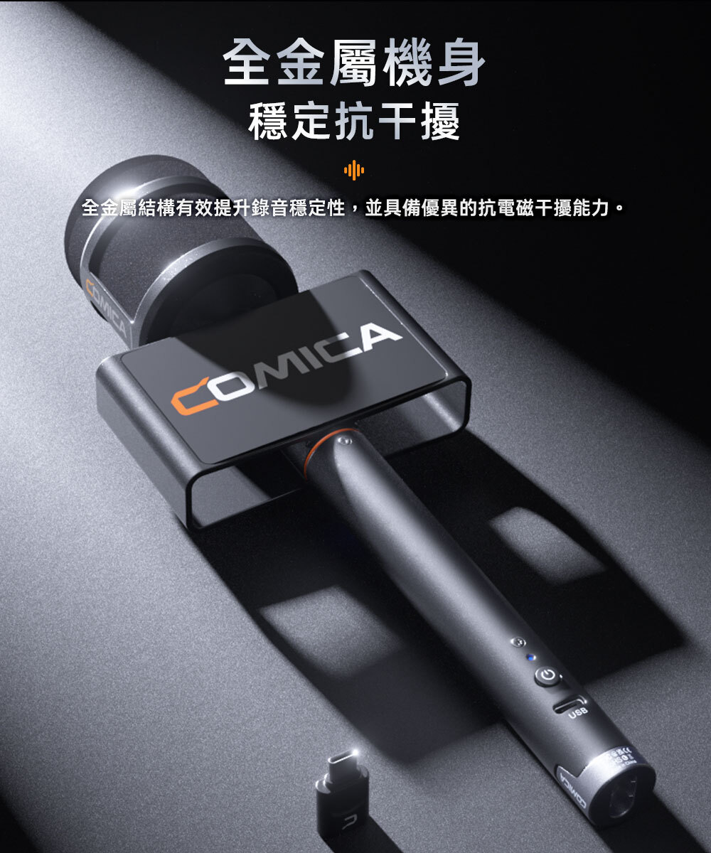 全金屬結構有效提升錄音穩定性,並具備優異的抗電磁干擾能力。