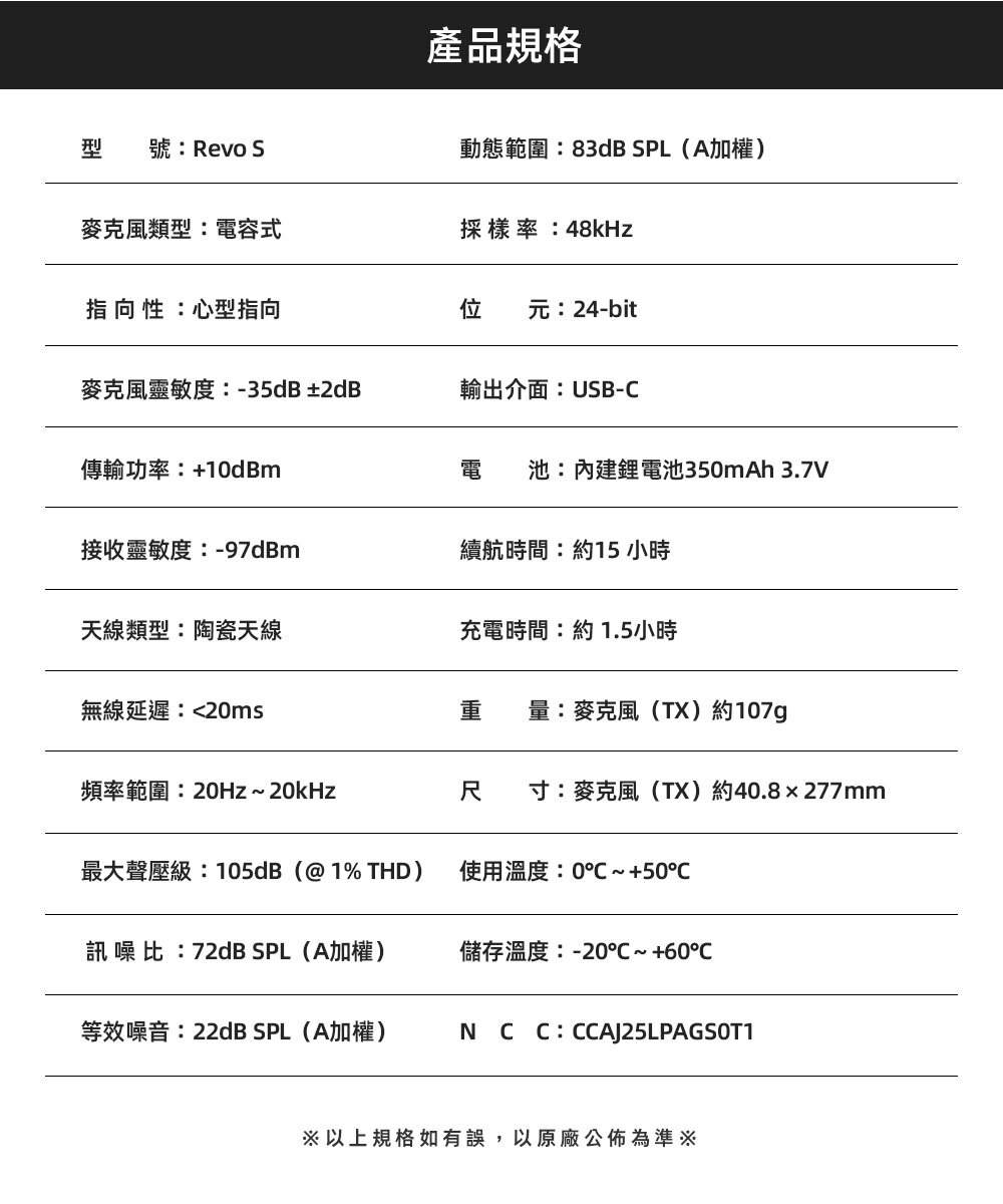 尺 寸:麥克風(TX)約40.8 × 277mm