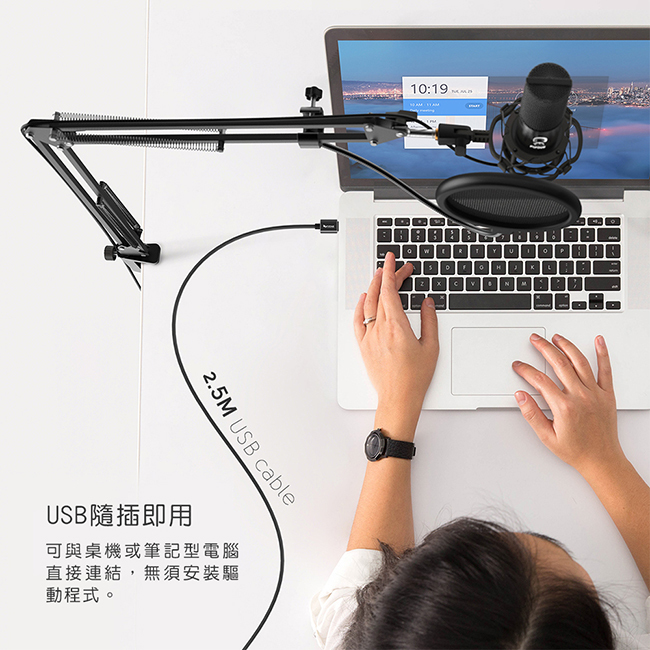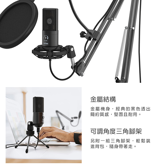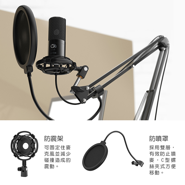 ● 內含麥克風懸臂、防震架、防噴罩,專業設備一次滿足
