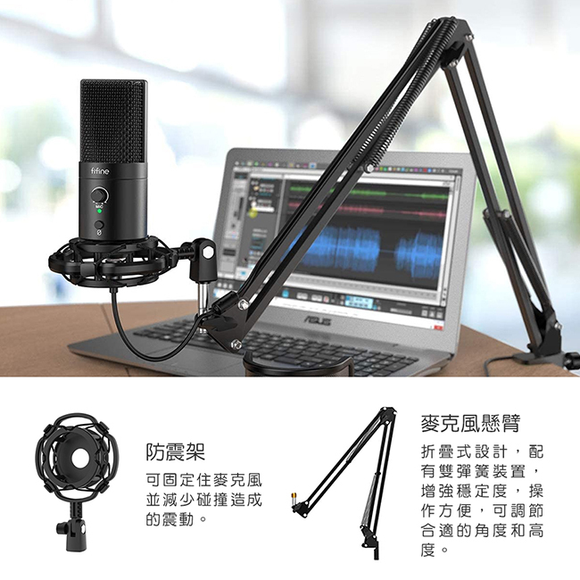 ● 內含麥克風懸臂、防震架、防噴罩,專業設備一次滿足