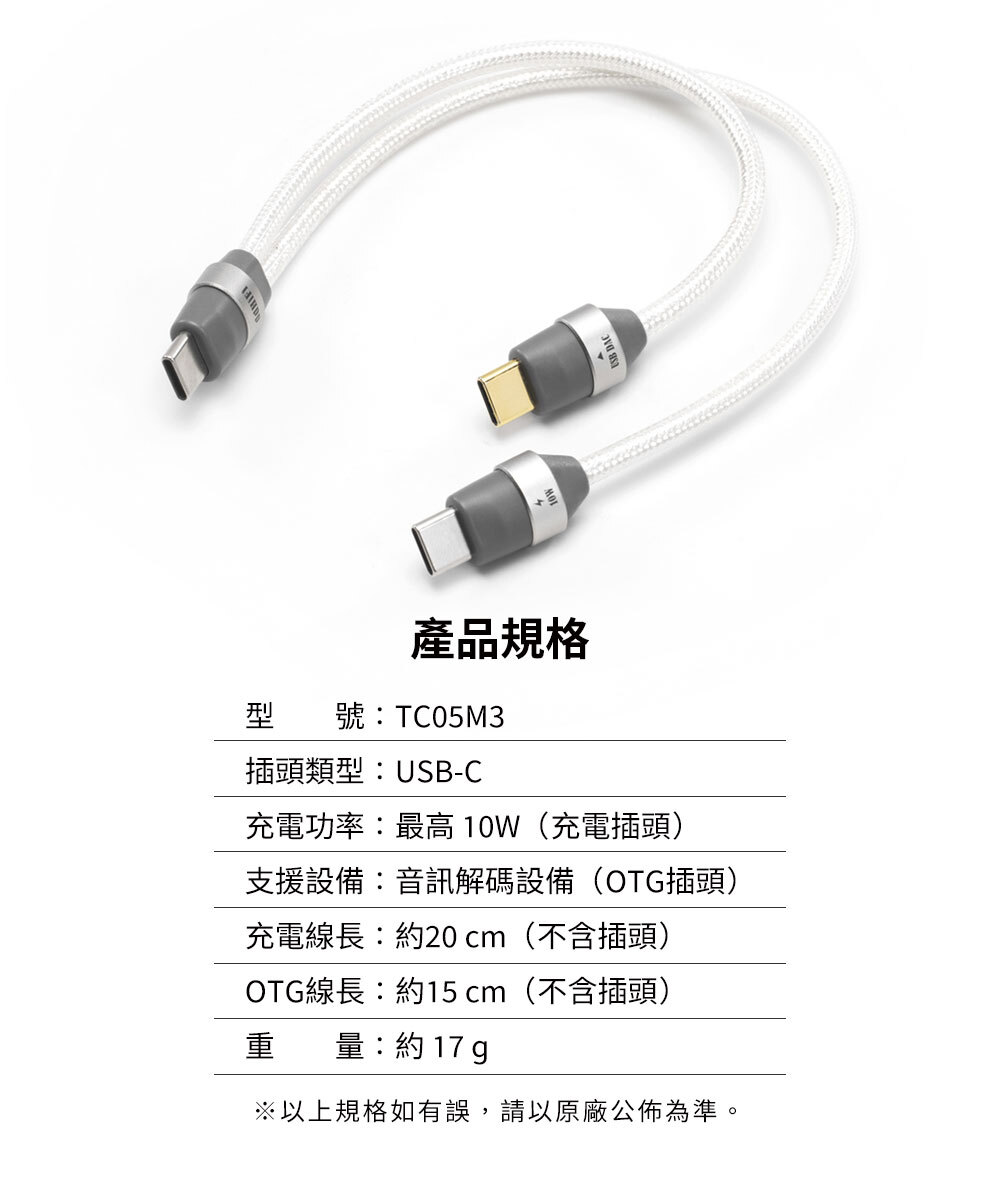 【ddHiFi TC05M3 雙Type-C可充電OTG解碼轉接線】