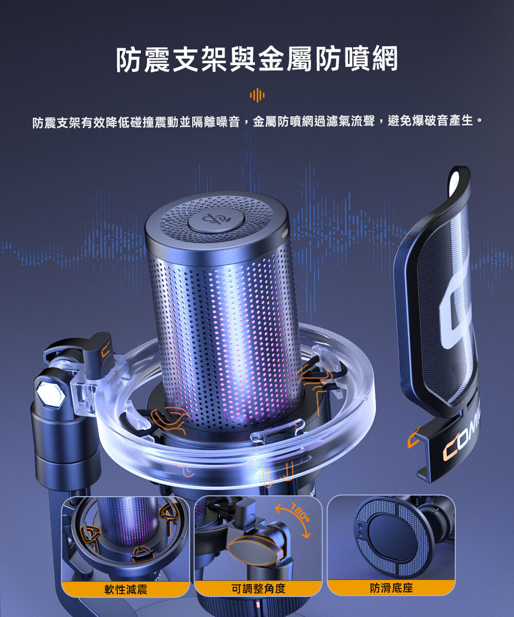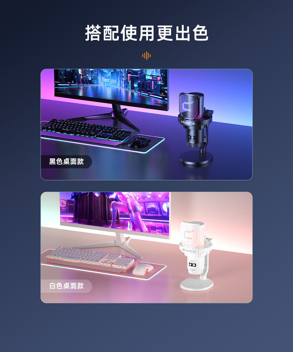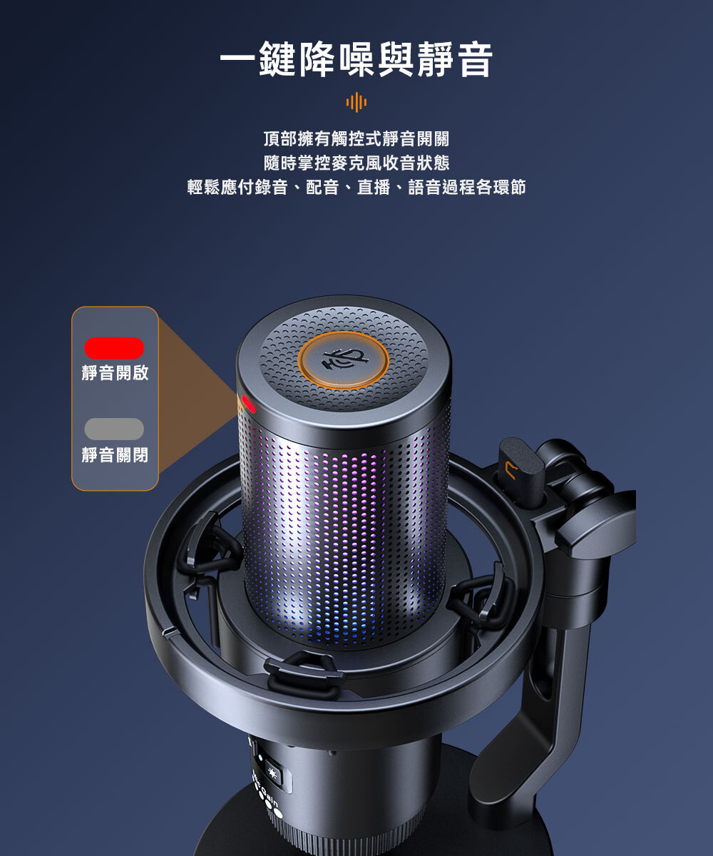 ● 支援增益控制、監聽、一鍵降噪與靜音