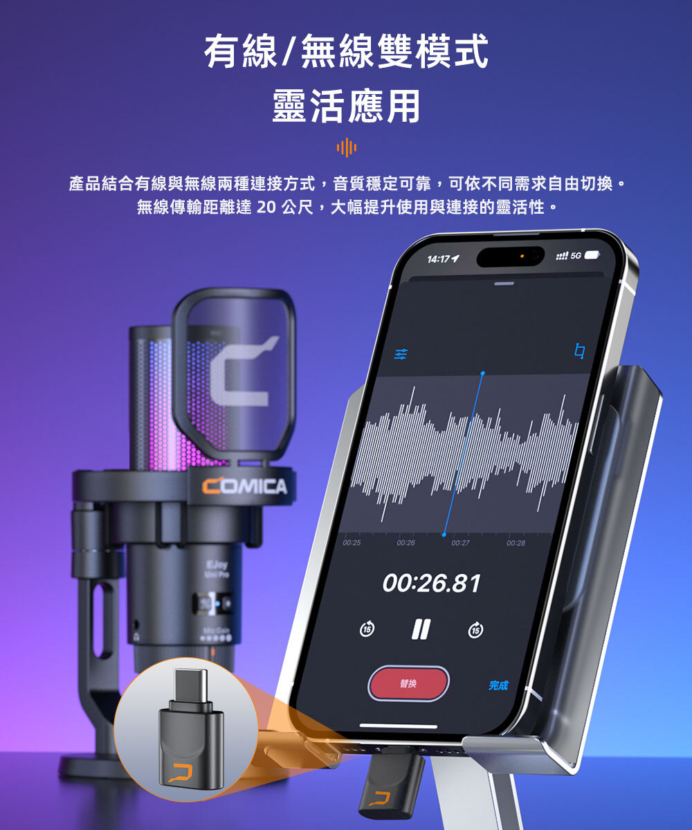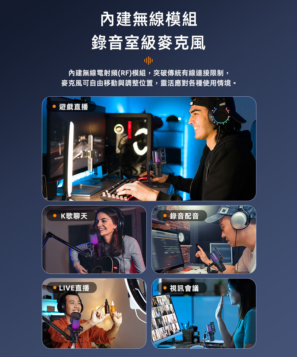 ● 內建無線模組的錄音室級麥克風