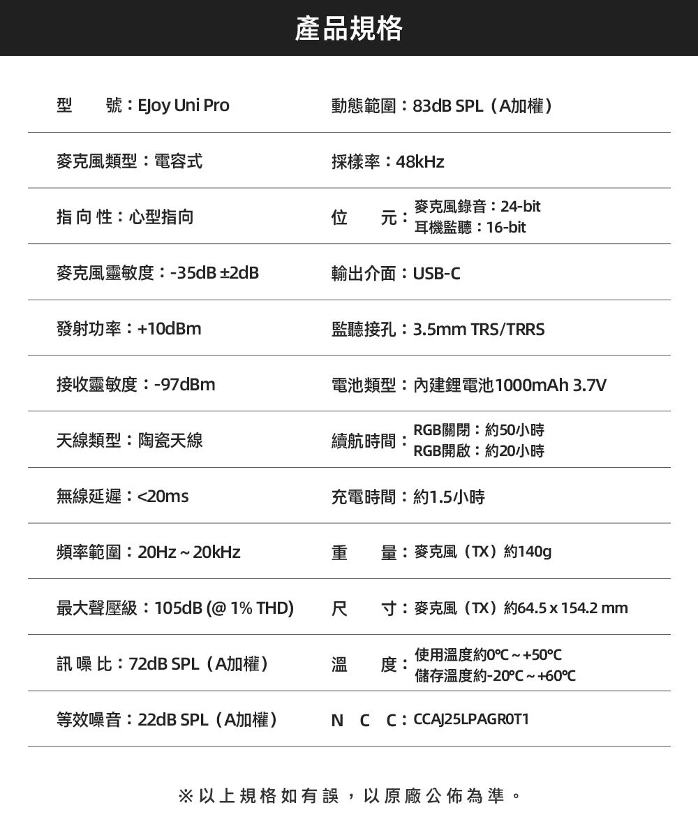 型 號:EJoy Uni Pro