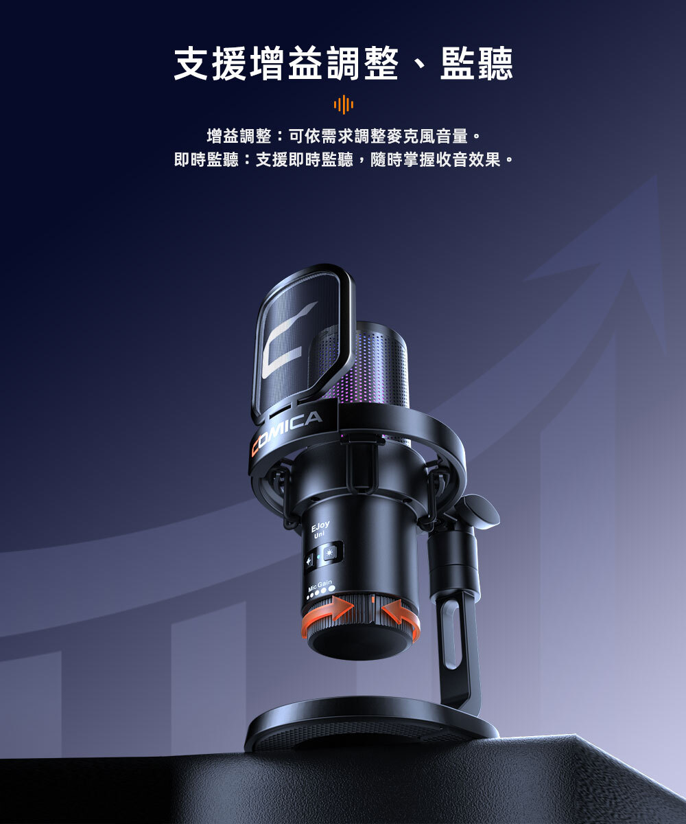 ● 支援增益控制、監聽、一鍵降噪與靜音