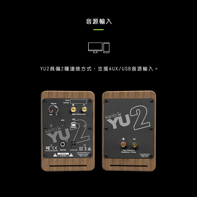 【Kanto YU2 立體聲書架喇叭-胡桃木紋款】