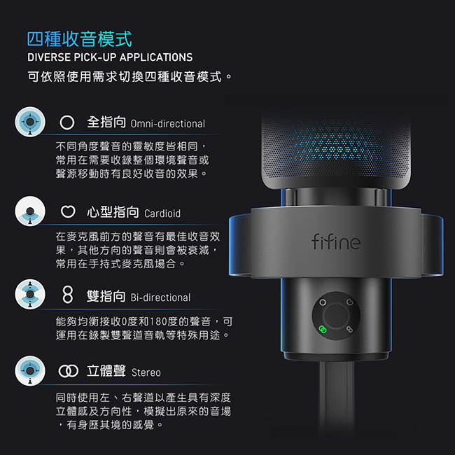 ● 四種收音模式-全指向/心型指向/雙指向/立體聲